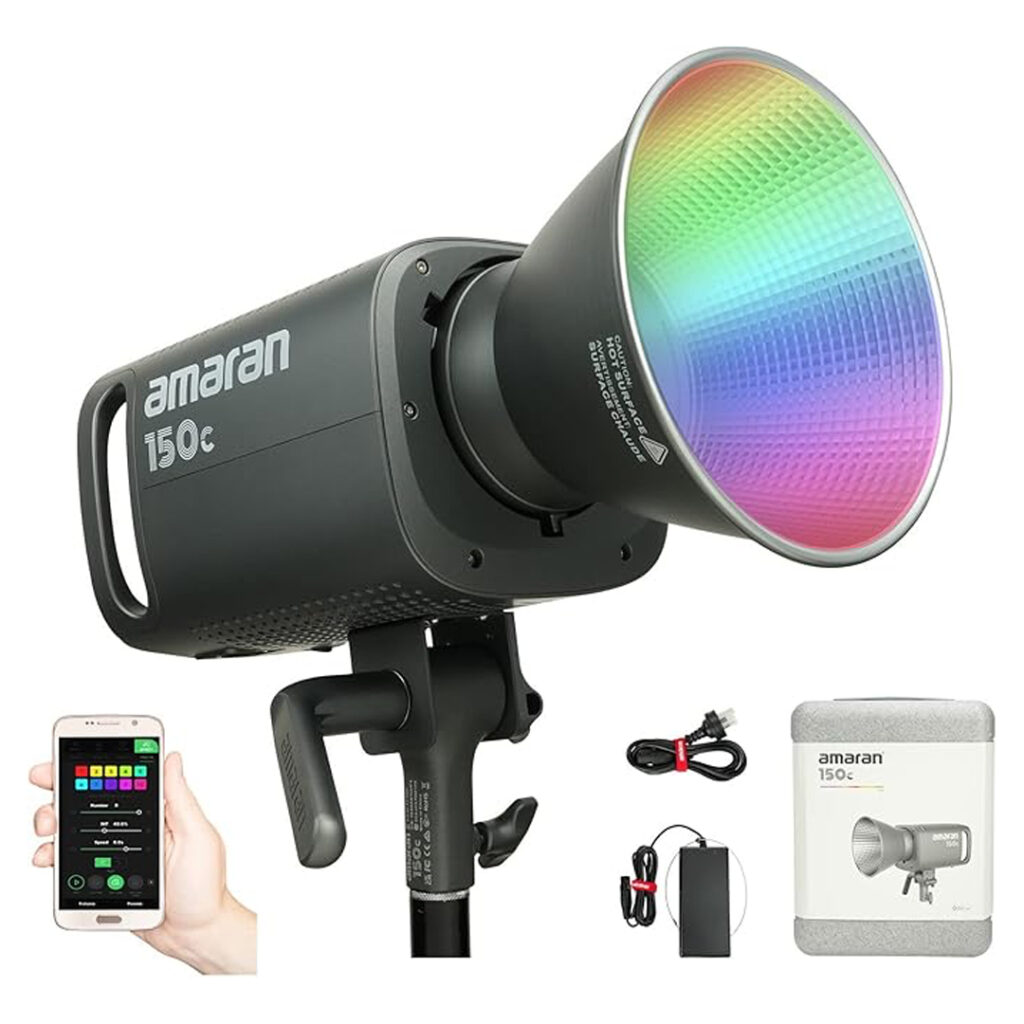 Amaran 150c is Amaran’s first-ever full-color 150W Bowens Mount point-source LED light, combining RGBWW full-color control, optical and soft light Bowens Mount versatility, integrated controls, and most importantly, high-quality light output. the Amaran 150c produces stunning color quality throughout its expanded bi-color CCT range of 2,500K to 7,500K with green-magenta adjustment and 360° HSI color control with >90% coverage of the Rec.2020 Color Space. And with high CRI/TLCI [95+], SSI (D56) [71], and SSI (Tungsten) [83] scores, the Amaran 150c can reliably output color-accurate light to achieve faithful skin tones.